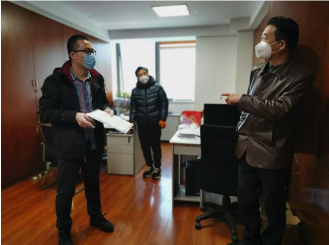 圖:某社區聯合城管、派出所、物業等部門對轄區復工企業進行排查