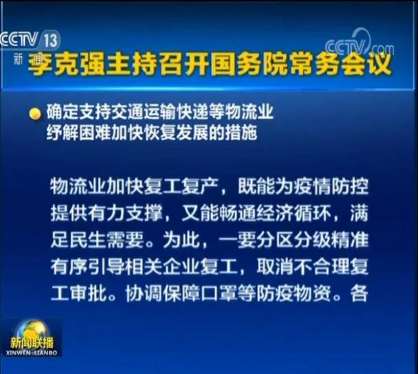 近日,在召開的國務院常務會議指出,物流業加快復工復產,既能為疫情防控提供有力的支撐,又能暢通經濟循環,滿足民生需要,為此,要分區分級精準有序引導盯關企業復工,取消不合理復工審批。