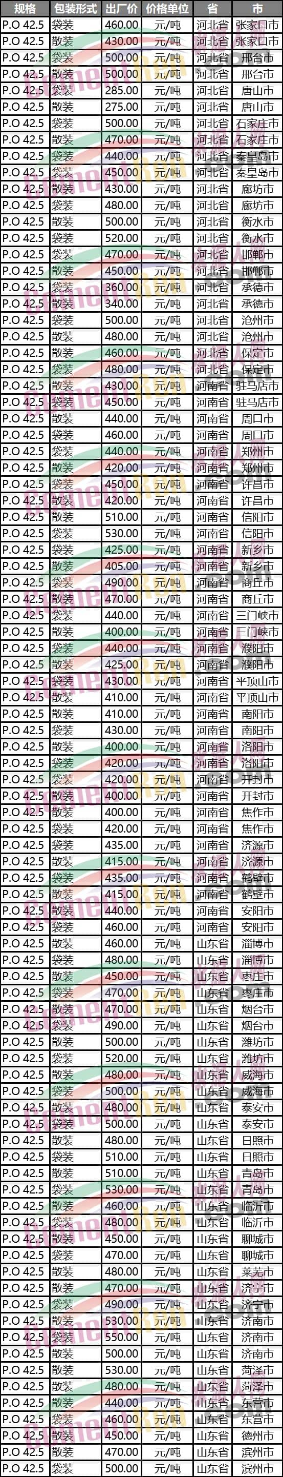 注:以上價格來源于水泥人網信息中心,如有差池請以實際數據為準!