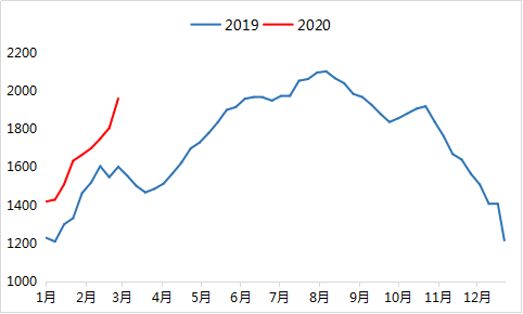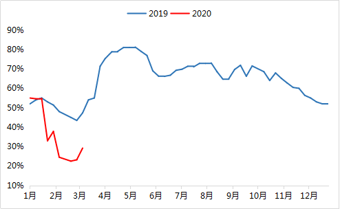 據百年建筑網調研174家水泥企業發貨情況,3月2—8日發貨量123.5萬噸,環比上周增長45.4%,同比減少70%,主要因去年春節時間在2月初,到3月中旬水泥企業基本達到正常銷售水平,按照以往經驗來看,今年春節時間相對提前10天左右,水泥企業達到正常銷售水平的時間應為3月初,但今年受疫情的影響,下游企業開工時間延后,導致此時水泥發貨量較去年同期減少70%,預計達到正常發貨水平的時間需等到三月中旬以后,時間節點上與去年基本一致。
