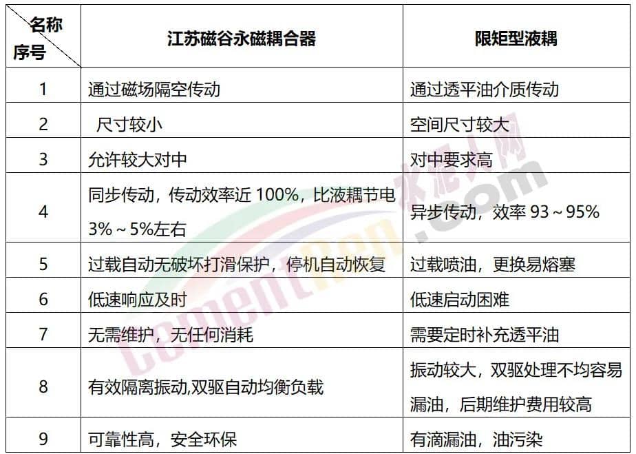 那么對于水泥企業來說,永磁耦合器和限矩型液耦之間有什么區別呢?水泥企業應該如何選擇耦合器呢?今天全國第一家致力于大轉矩(1500N·m以上,最大可達480000N·m)永磁耦合聯軸(保護)器應用研究和開發的企業,江蘇磁谷科技股份有限公司(以下簡稱“江蘇磁谷科技”)對于兩種耦合器的看法。