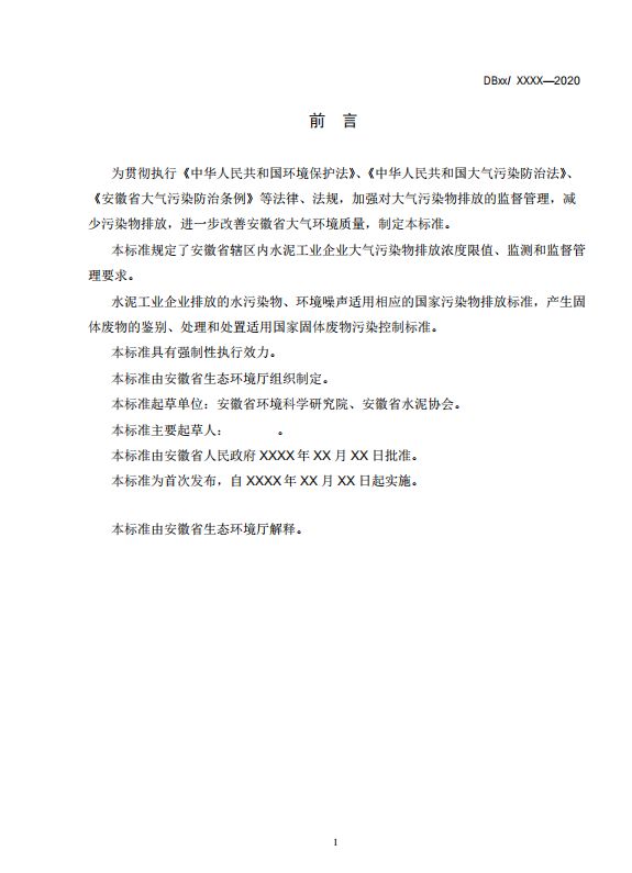 為充分發揮地方標準在降低污染物排放總量、調節行業準入和壓減落后產能中的積極作用,2019年9月,安徽省生態環境廳啟動《安徽省水泥工業大氣污染物排放標準》(以下簡稱《標準》)制訂工作。