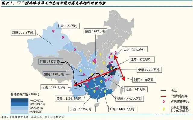 1997年,海螺水泥赴港上市融資,隨后沿長江布點實施“T”型發(fā)展戰(zhàn)略,T型的橫豎對應(yīng)著長江和沿海,其含義是在擁有豐富石灰石資源的區(qū)域建立大規(guī)模生產(chǎn)的熟料基地,利用長江的低成本水運物流,到達長江沿岸和東部沿海擁有大容量水泥消費的城市群,并在當(dāng)?shù)亟⒎勰フ净亍?br />