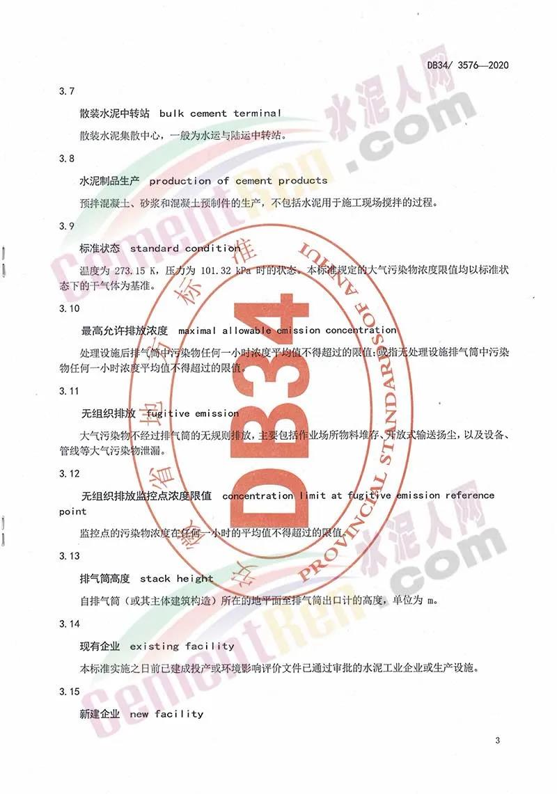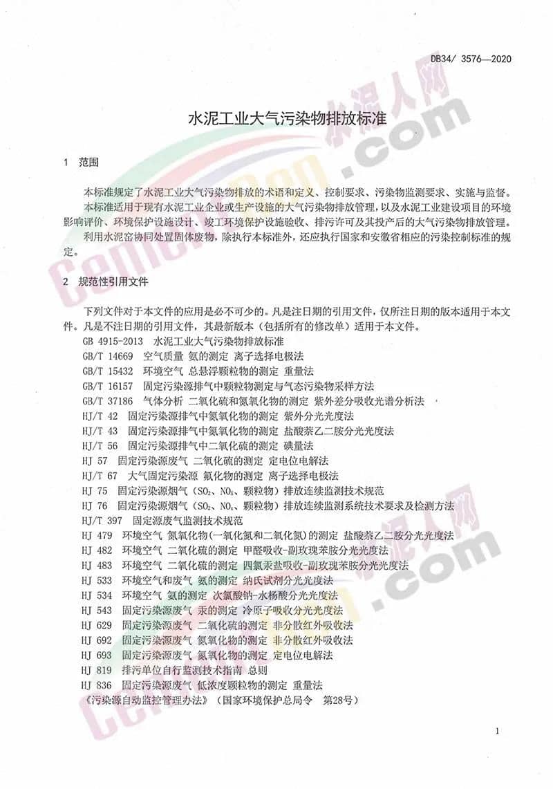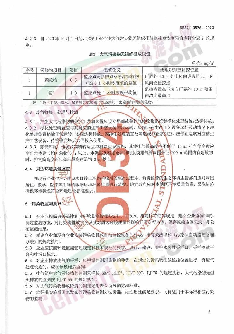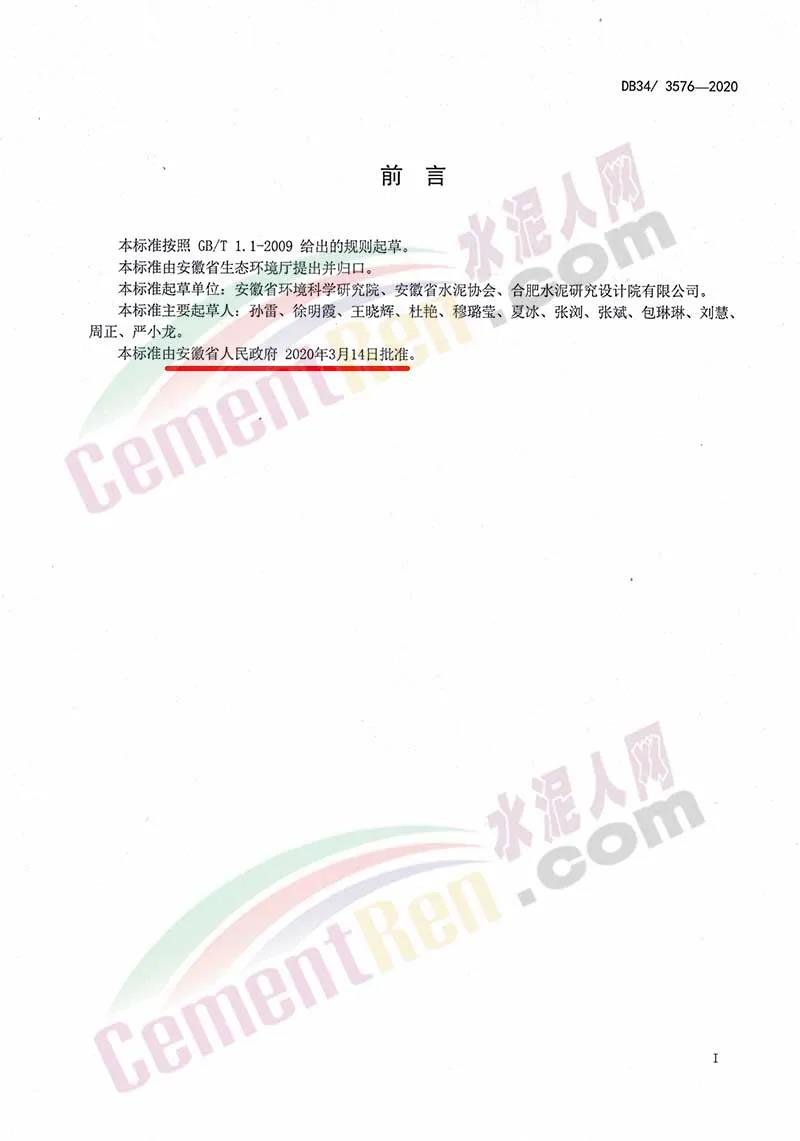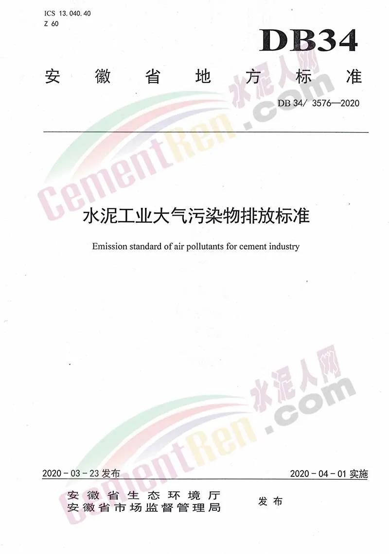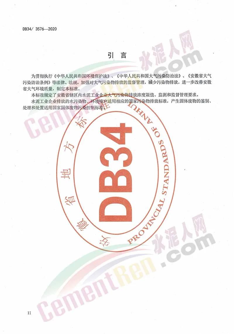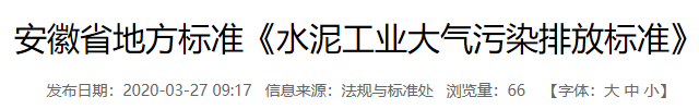 安徽省地方標(biāo)準(zhǔn)《水泥工業(yè)大氣污染排放標(biāo)準(zhǔn)》