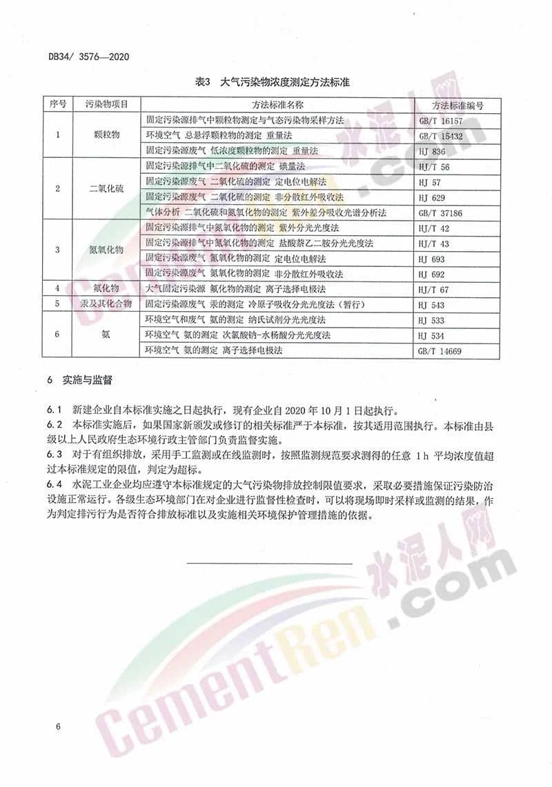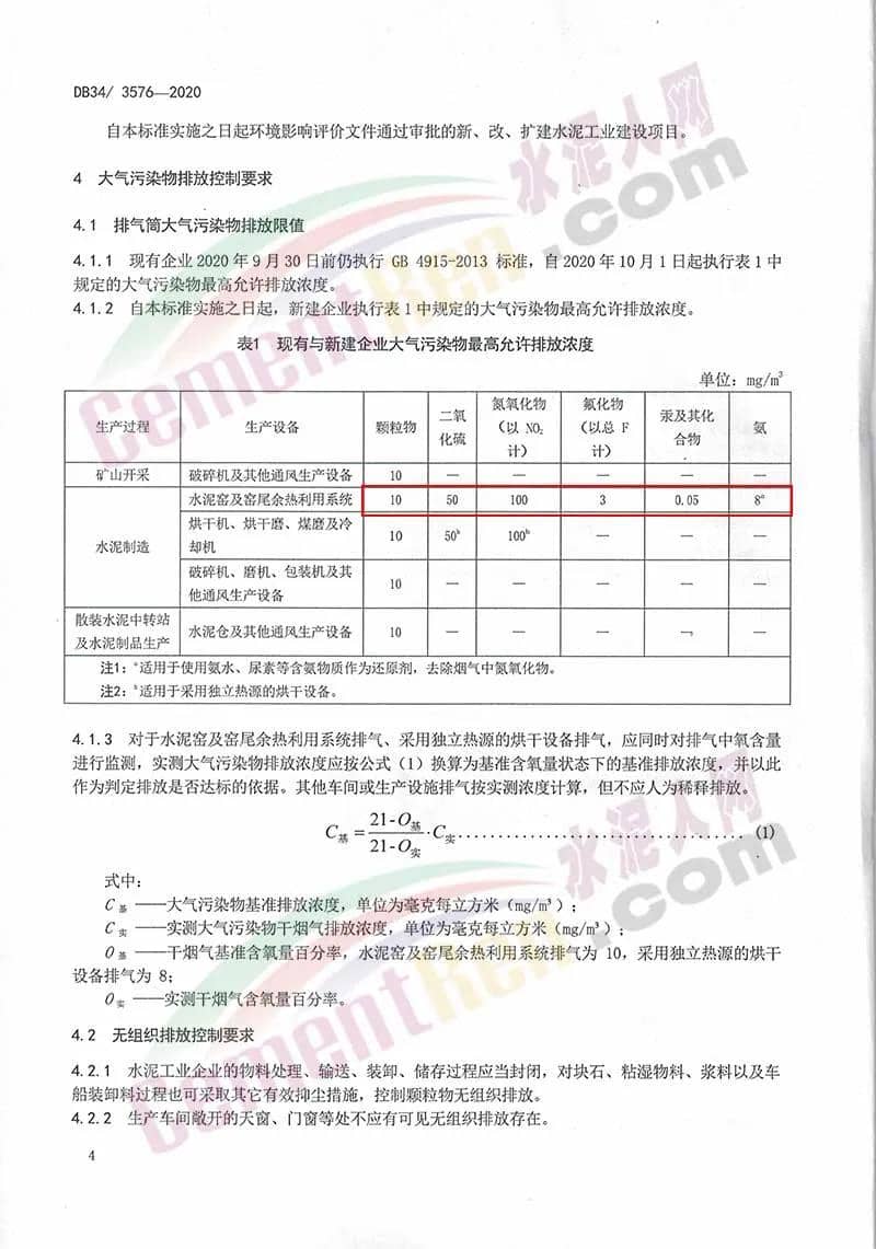 為助力打贏藍(lán)天保衛(wèi)戰(zhàn),加嚴(yán)重點(diǎn)行業(yè)污染物排放標(biāo)準(zhǔn),安徽省生態(tài)環(huán)境廳牽頭制定《標(biāo)準(zhǔn)》。據(jù)介紹,《標(biāo)準(zhǔn)》適用于現(xiàn)有水泥工業(yè)企業(yè)或生產(chǎn)設(shè)施的大氣污染物排放管理,以及水泥工業(yè)建設(shè)項(xiàng)目的環(huán)境影響評價(jià)、環(huán)境保護(hù)設(shè)施設(shè)計(jì)、竣工環(huán)境保護(hù)設(shè)施驗(yàn)收、排污許可及其投產(chǎn)后的大氣污染物排放管理。《標(biāo)準(zhǔn)》規(guī)定,有組織排放的顆粒物、二氧化硫和氮氧化物分別為10、50、100mg/m3,為目前執(zhí)行的國標(biāo)特別排放限值的50%、50%、31.2%(國標(biāo)要求顆粒物、二氧化硫和氮氧化物分別為20、100、320mg/m3),氟化物、氨、汞及其化合物分別為3、8、0.05mg/m3,與國標(biāo)要求一致。