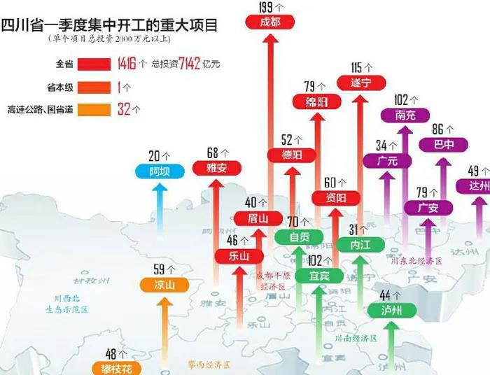 此次集中開工的1416個重大項目,涉及基礎設施、產業發展、民生及社會事業等領域,總投資達7142億元,民間投資占全部項目總投資額的50%以上。這批項目的開工建設,將進一步擴大四川省有效投資,為有效應對疫情對四川省經濟社會發展的影響,實現全年經濟社會發展預期目標提供有力支撐。