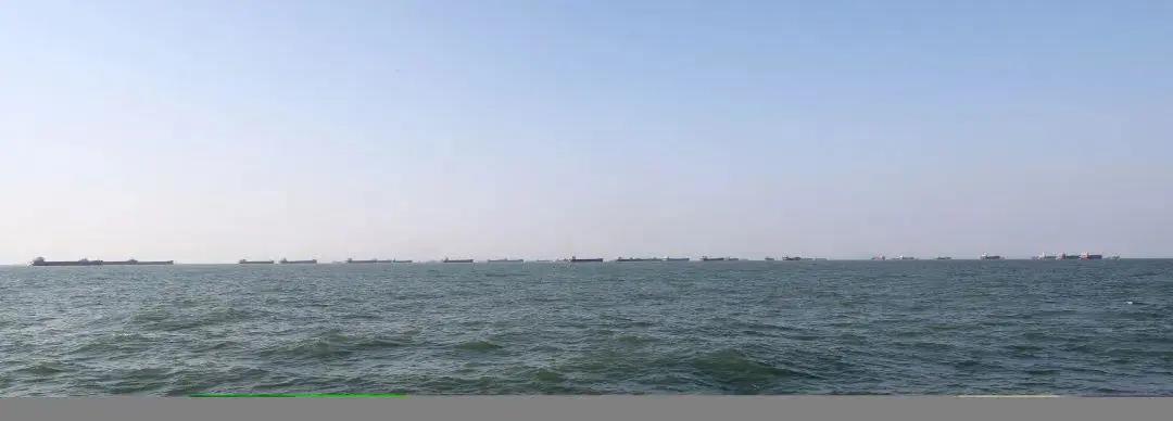 沿海水域,遠遠望去,內河船連成“一條龍”。