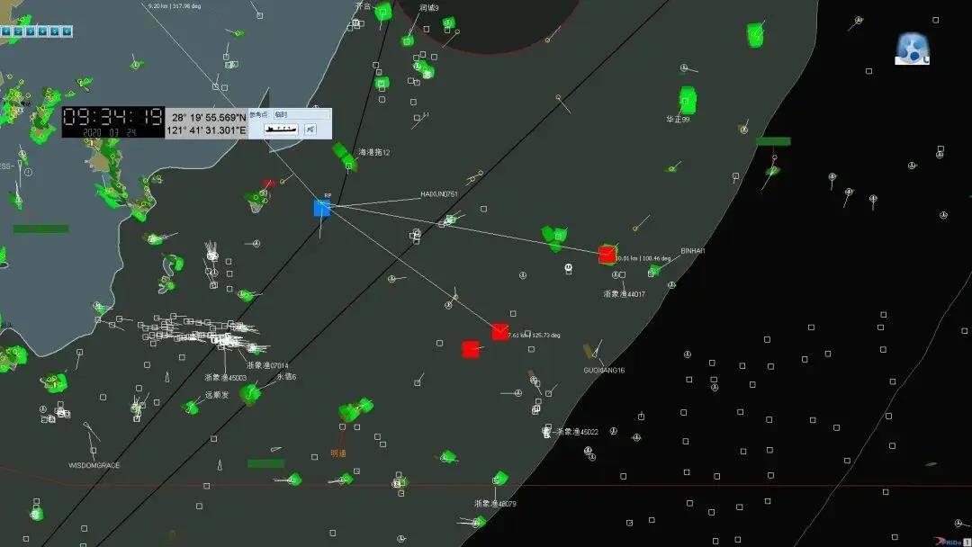 VTS利用電子巡航在溫嶺三蒜島附近水域鎖定福建北上內河船,信息通報現場執法行動組。
