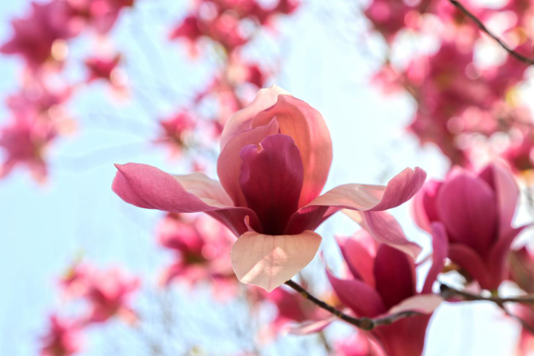 辦公樓前的玉蘭花已綻開,如一個(gè)個(gè)俏美人,栩栩如生地在風(fēng)中搖曳,美麗清新、綠色盎然,散發(fā)著淡淡的清香,在陽(yáng)光下朝氣蓬勃、奮發(fā)向上。