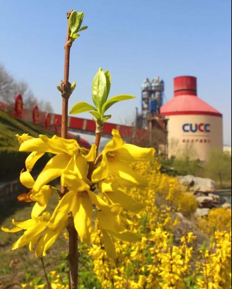 藍(lán)天下的洛陽(yáng)中聯(lián)空氣清新,微風(fēng)把春意播種在了廠區(qū)的每個(gè)角落,一串串嬌黃的連翹仿佛在昭示著早春的美麗,辦公樓前的桂樹,嫩芽在春風(fēng)的撫摸下,努力向外舒展。