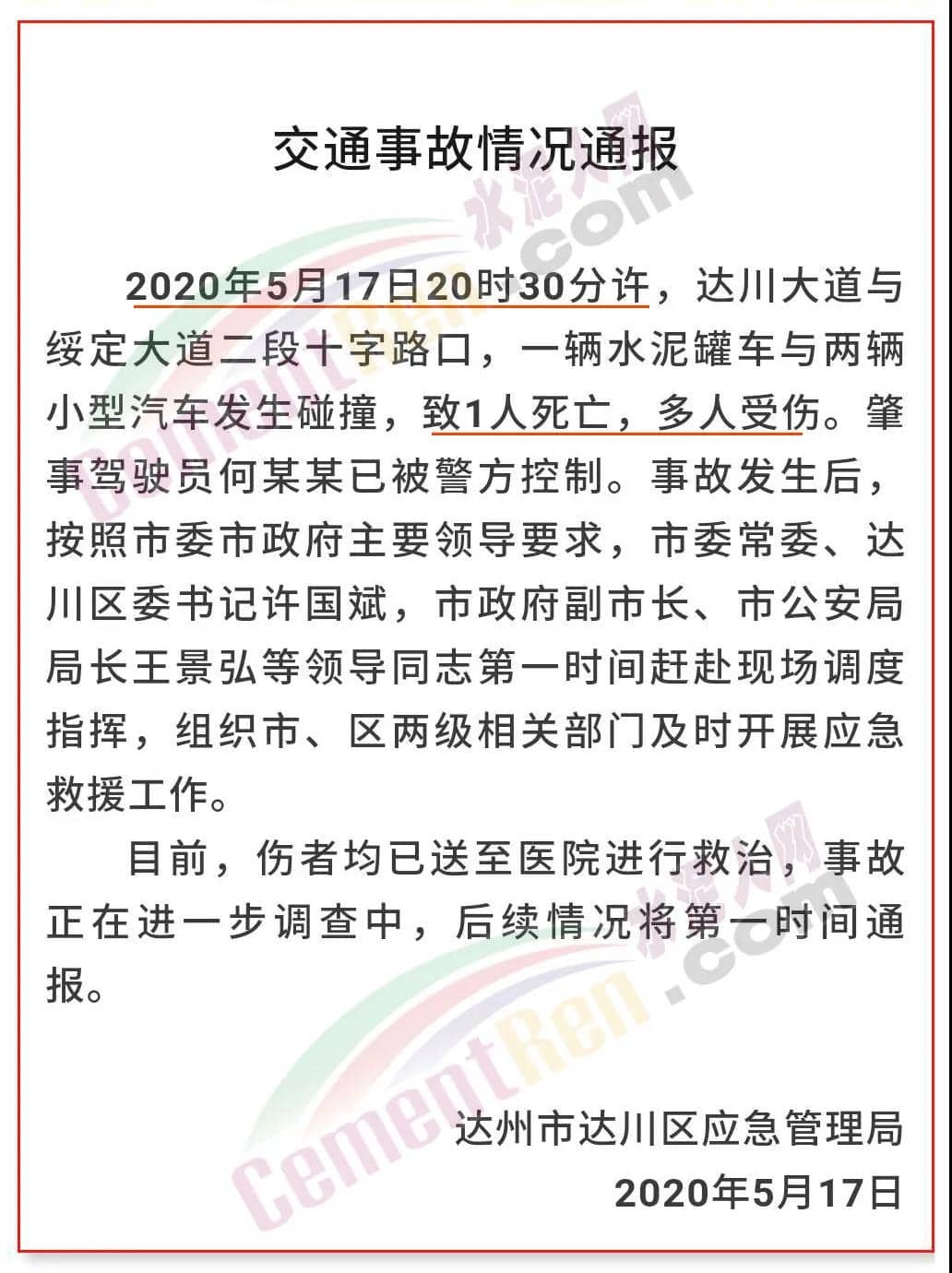 綜合媒體報道,該事故發生在四川達州南城鬧市區,目擊者說,當時該罐車根本剎不住車。有當地網民表示,“那段路設計有問題,剛通車我就說容易出事,設計人員腦殼遭門夾了,幾公里下坡,坡又陡,下完坡剛好又是信號燈,如果穿隧道,就好了?”還有網民質疑:“這種罐車怎么進的鬧市區?”“這個時間點就不該有這種車出現,夜深人靜的時候才允許這樣的車上路。”另有網民說:“渣土車,水泥罐車!有時候連續奮戰!困得睜不開眼了,也要拉!還要快!這是根本問題!”據水泥人網了解,目前水泥建材貨運行業的事故多發,超載超限現象依然嚴重,甚至有從業者表示不超不賺錢,只要有一個司機超大家就都得超。最不希望超載的就是司機,他們巴不得所有人都不超載,標載“省車又省人”。大家都拉標載,就可以提高一下運費,然后過上不說輕松,至少相對安全的生活,但是現實卻是超載屢禁不止,“百噸王”在部分區域仍暢通無阻。
