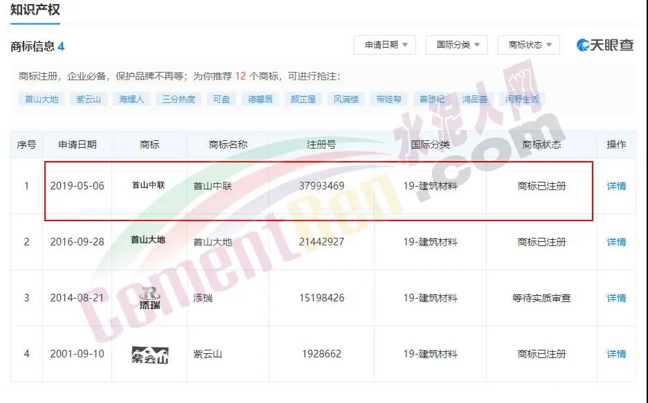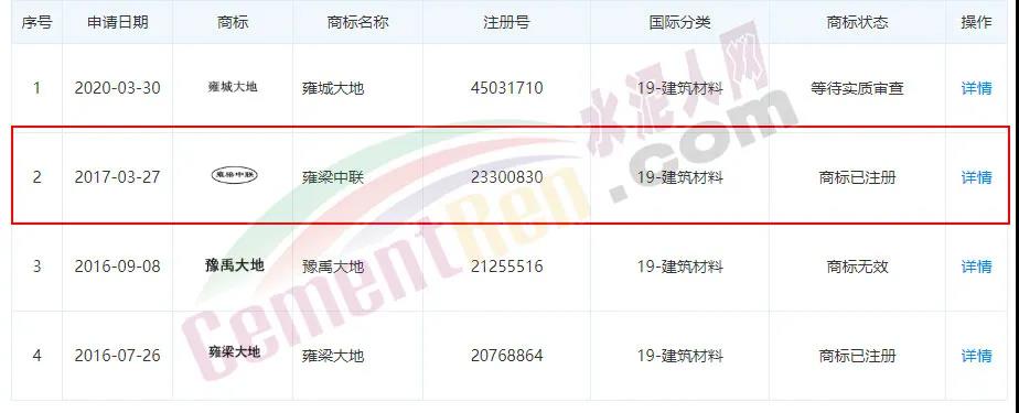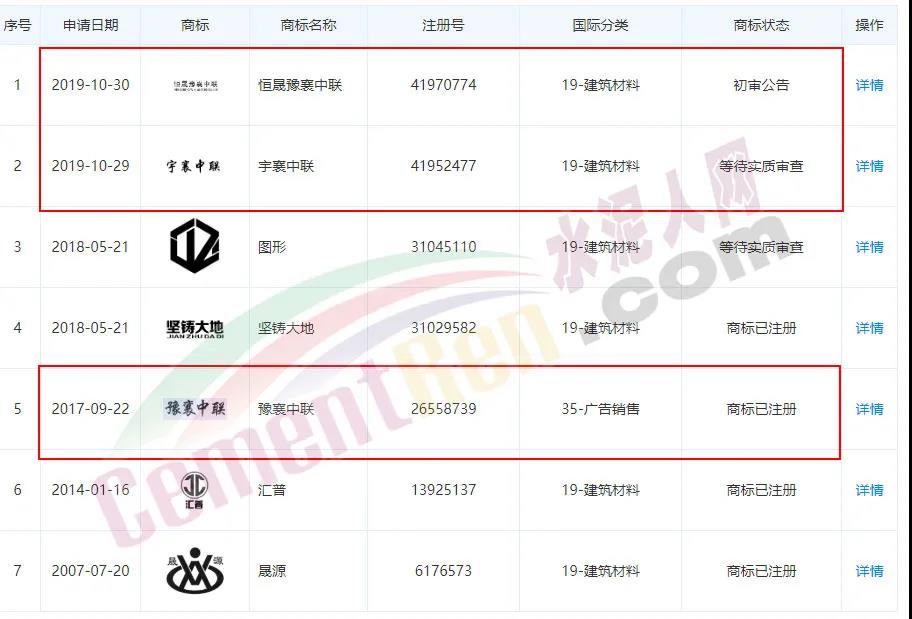 許昌市恒晟水泥有限公司 :“豫襄中聯”商標已注冊; “宇襄中聯” 等待實質審查;“恒晟豫襄中聯” 初審公告