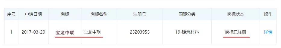 據查詢,“寶龍中聯”商標持有企業為安徽省蕭縣寶龍水泥制造有限公司寶龍粉磨分公司。 其“寶龍中聯”品牌于2017年3月20日申請注冊,目前商標狀態為已注冊。