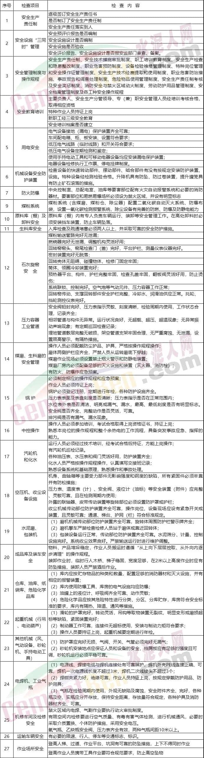 對于水泥行業,安全檢查都查些什么,一直以來都各行業從業人士,甚至檢查員們關注的大事。水泥生產工藝和工序復雜多樣, 由于安全防護措施不到位、違章作業等原因,水泥企業安全事故多發,事故類型多樣化。水泥筒形庫清庫、預熱器清堵、篦冷機“打雪人”、預分解點火和投料、磨機和窯爐系統檢維修、協同處置廢物等作業過程,常發生坍塌、火災、窒息、中毒、灼燙、高處墜落、車輛傷害、機械傷害等各類事故傷害。水泥工廠煤磨系統、燃油儲罐、脫硝系統等重點區域,易發生火災、爆炸等嚴重事故傷害。水泥生產安全不容忽視,每一個細節都關乎水泥人的生命和健康。