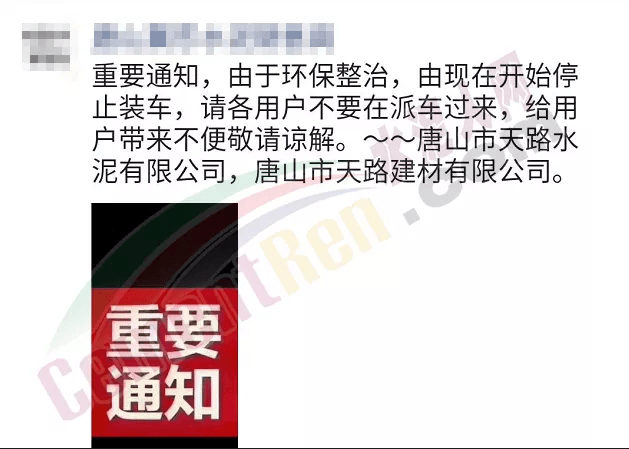 收到上述通知,區域內各水泥企業陸續發出停產、停運及暫停裝車的通知,并表示恢復時間不確定,將另行通知。