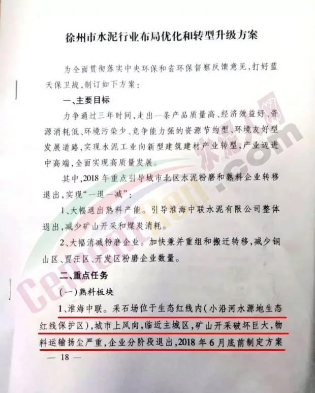 是科學(xué)有序退出還是“一刀切”關(guān)停引爭議,1100多名員工或失業(yè)此前江蘇徐州于2018年5月出臺(tái)《徐州市水泥行業(yè)布局優(yōu)化和轉(zhuǎn)型升級方案》要求徐州地區(qū)62家水泥廠于當(dāng)年6月30日前實(shí)行兩斷三清、停產(chǎn)、整改、拆除。要求淮海中聯(lián)分階段關(guān)停水泥業(yè)務(wù)。