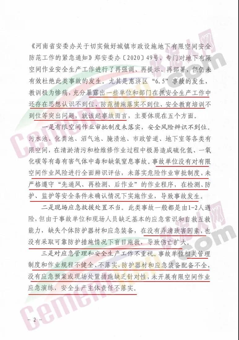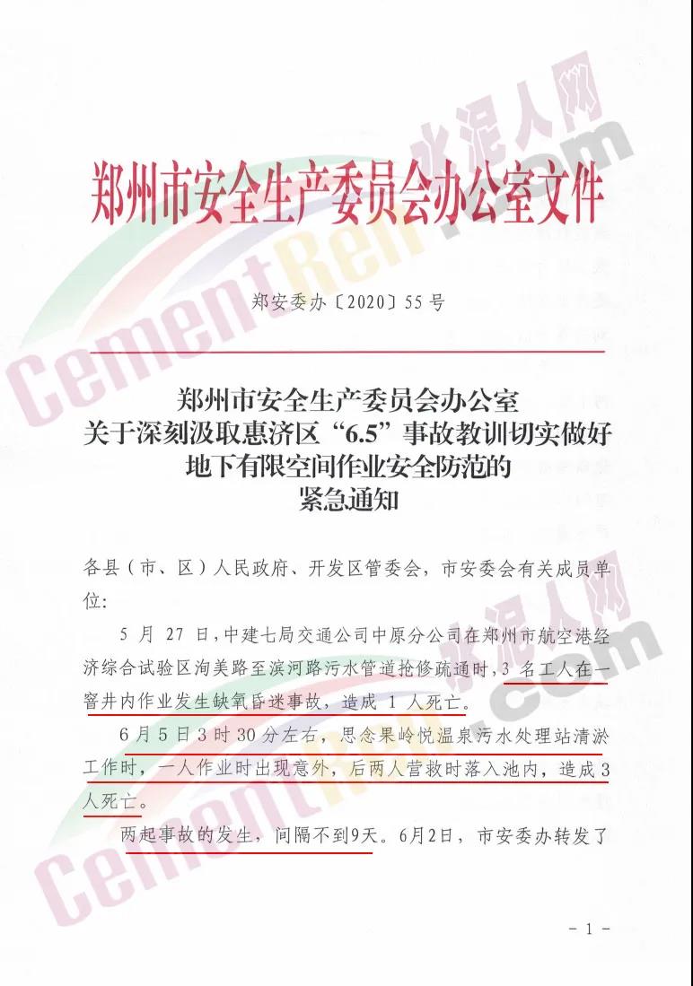 河南鄭州應急管理局發布《關于深刻汲取惠濟區“6.5”事故教訓切實做好地下有限空間作業安全防范的緊急通知》(鄭安委辦〔2020〕55號)提到: