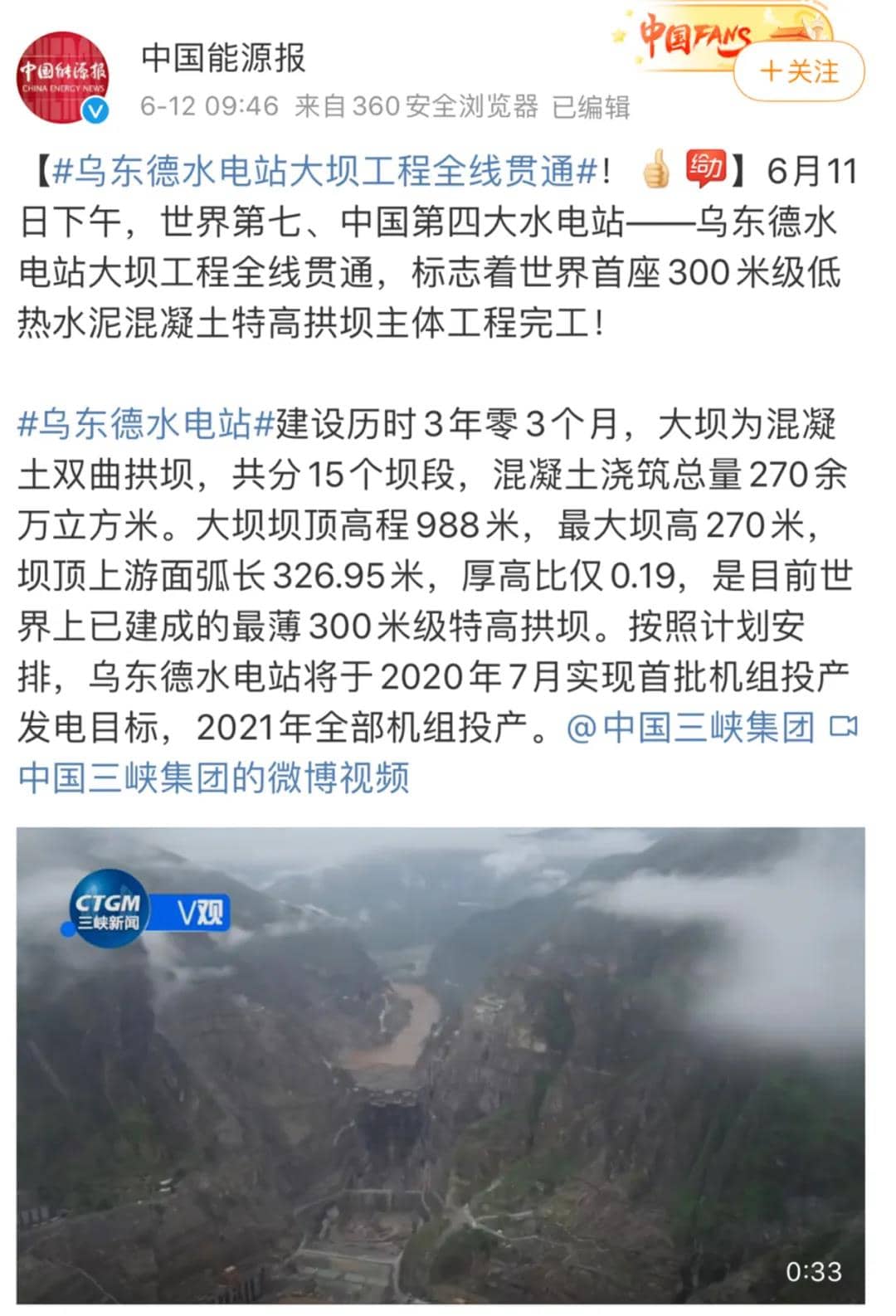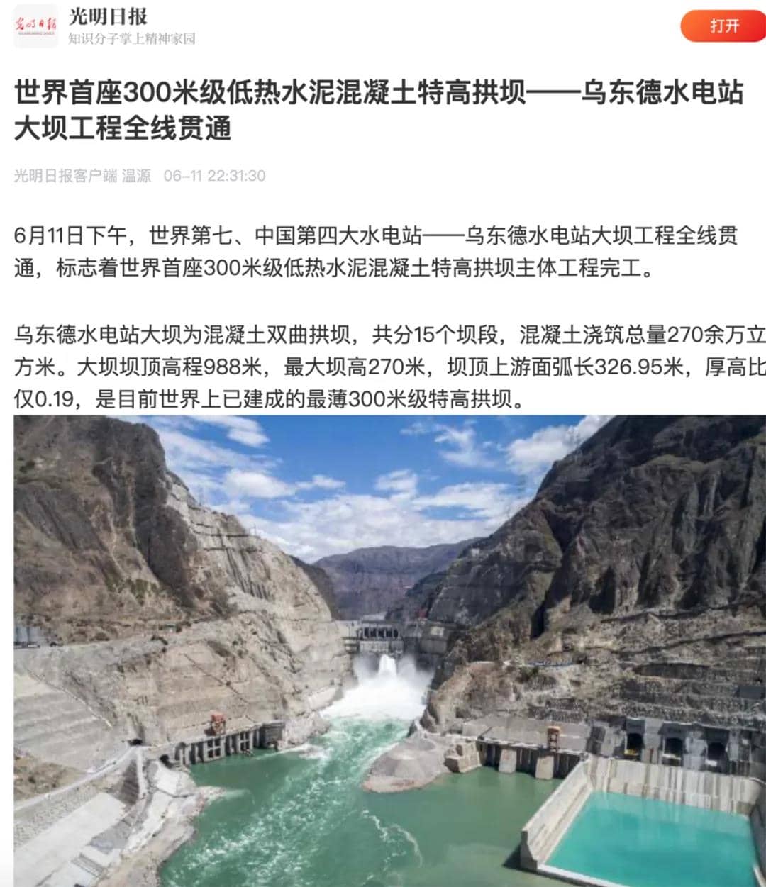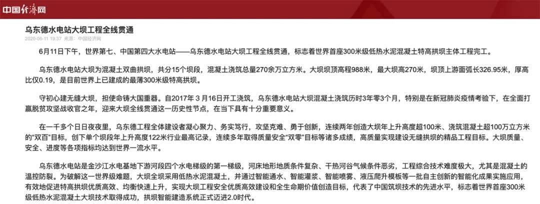 烏東德水電站這一重大工程節點立刻吸引了大量媒體關注包括人民日報、新華社中央電視臺、國資小新、光明日報等主流媒體第一時間對此事進行了報道快來看看吧!