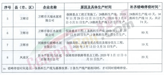 8、新鄉(xiāng)平原同力水泥有限責任公司需補齊錯峰停窯時間20天。