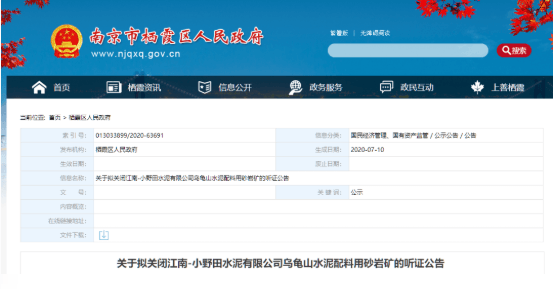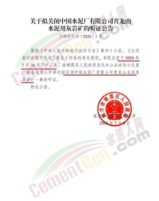 在蘇北淮海中聯水泥退出一事懸而未決之時,南京市棲霞區政府的這兩則聽證會公告,更加重了當地水泥行業的緊張情緒。據水泥人網了解,2019年7月8日和10月15日淮海中聯水泥所屬焦山礦區和青龍山礦區開采許可證分別到期,骨料、熟料及粉磨生產線相繼停產。當地政府未再續批礦山許可。淮海中聯水泥一直外購礦石用于生產。