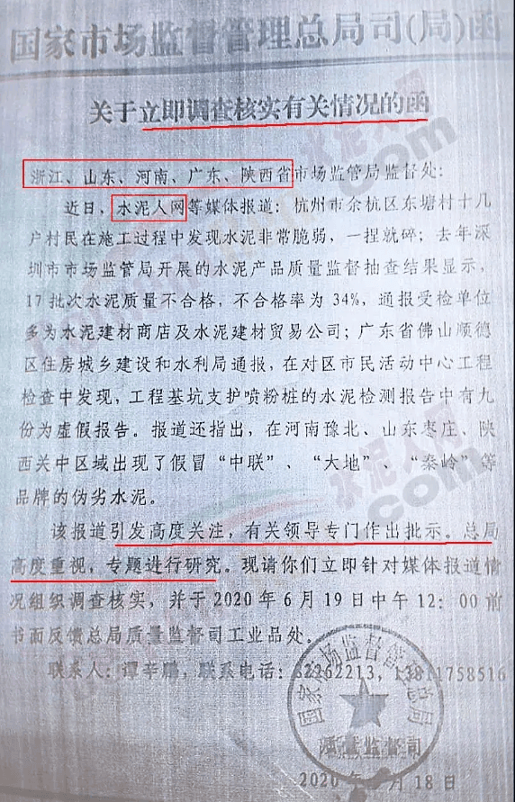 文件稱水泥質(zhì)量問題事關(guān)建筑工程質(zhì)量百年大計,事關(guān)群眾生命財產(chǎn)安全和企業(yè)合法權(quán)益,事關(guān)質(zhì)量強國戰(zhàn)略實話,事關(guān)市場秩序和營商環(huán)境 ,國務(wù)院領(lǐng)導專題做出指示要求嚴厲查處水泥質(zhì)量問題,省局領(lǐng)導高度重視,要求嚴格貫徹國務(wù)院領(lǐng)導重要指示精神,嚴格執(zhí)行聯(lián)合調(diào)查組精神,忠實履職盡責,加強監(jiān)管執(zhí)法劣實工作責任,限期查處問題,維護群眾利益和企業(yè)合法權(quán)益,維護良好市場秩序。