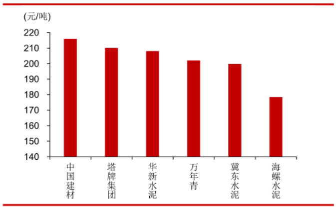 水泥人網認為隨著兩材業務層面整合的推進,中國建材或將通過集中采購(特別是前文所述有業務重合地區)以及整合銷售渠道的方式實現降低成本、精簡組織架構。據相關數據顯示,2019 年,中建材噸成本 215-220 元/噸,噸三費 87 元,在所有上市企業中處于較高水平,成本下降空間充足。