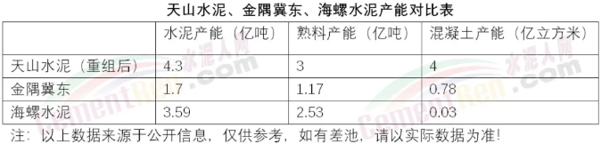 重組后的天山水泥相當于2.5個金隅冀東、1.1個海螺水泥