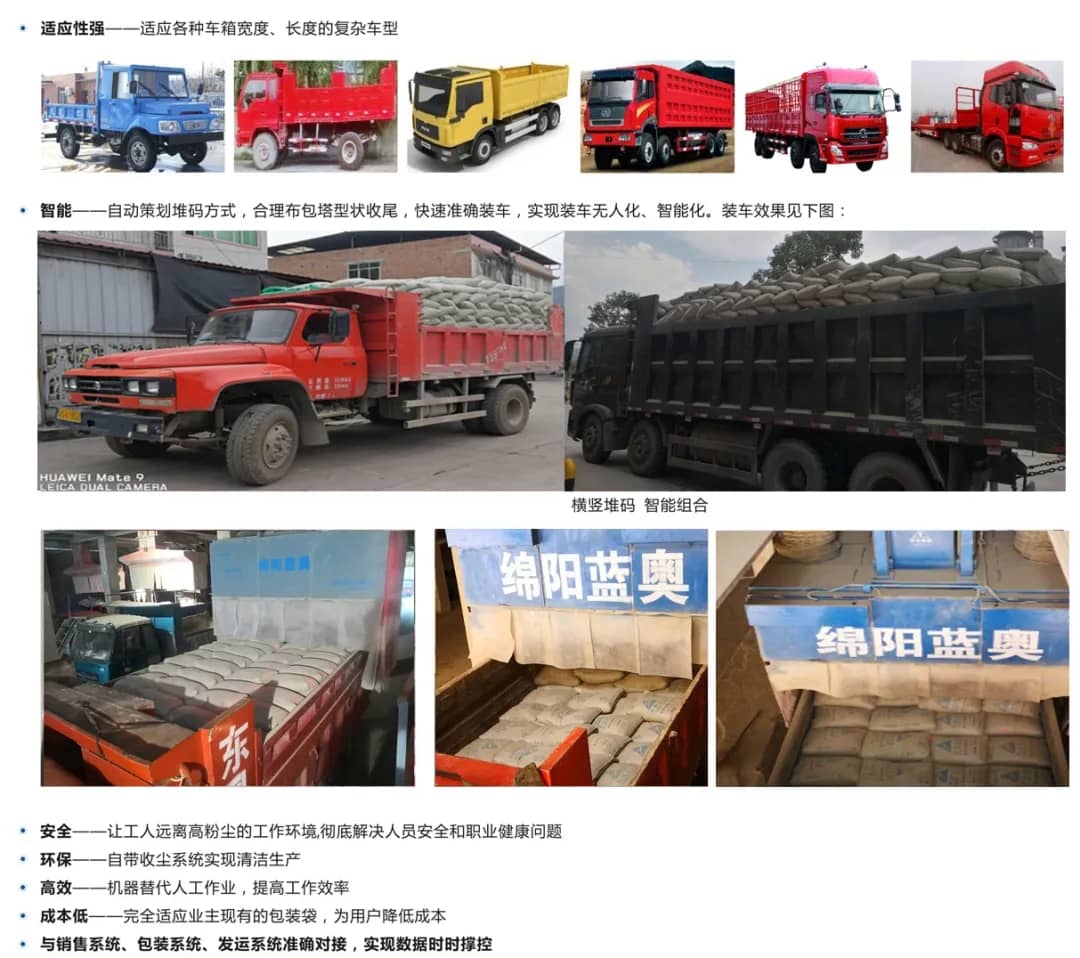 除此之外,王總表示:目前水泥企業普遍面臨著勞動力短缺的問題(急需解決)、工人職業健康安全(工作環境惡劣)、企業環保、社會壓力大(粉塵污染環境)和企業成本高(僅人工達2.2-3.0元/噸)等問題。目前全國水泥企業(無論是央企、大型國企還是民企)包裝、裝車生產線都是這種情況,有的企業裝個收塵器,能夠解決一部份揚塵的問題,但都沒有從根本上解決。綿陽藍奧科技的智能化裝車系統可以幫助水泥企業降低人工成本,增加企業的效益,可謂是一舉兩得。據水泥人網了解,目前,綿陽藍奧科技的智能化裝車系統已經在中國建材、中聯水泥、華潤水泥、祁連山、紅獅水泥、華新水泥、金隅冀東、東方希望、魚峰集團等水泥集團廣泛應用,并得到了高度認可。