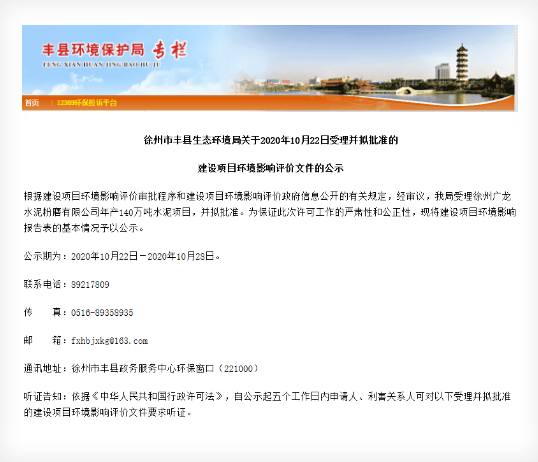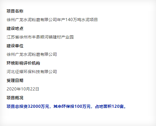 附件:徐州廣龍水泥粉磨有限公司年產140萬噸水泥項目