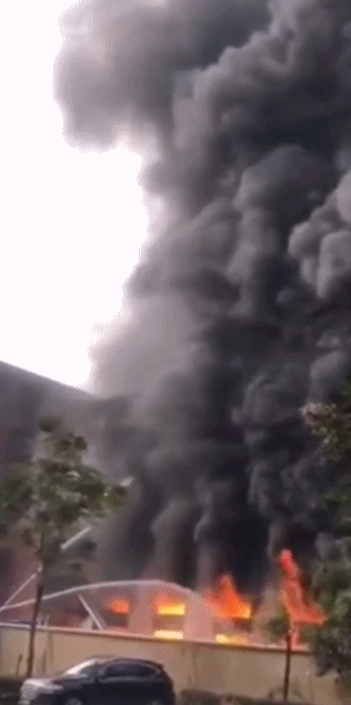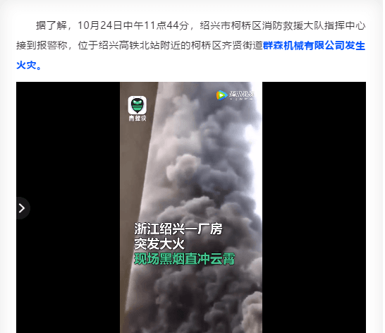 同日午間,浙江紹興一企業廠房發生火災,火焰貫穿整棟樓。