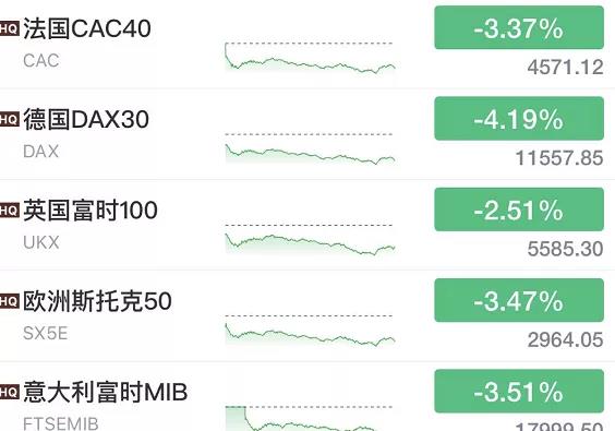 受疫情等因素的影響,歐美股市腥風血雨,一片殺跌!歐洲股市被錘完之后,美股繼續錘!