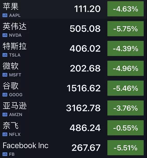 科技股領跌納指,英偉達跌超5.7%,谷歌、推特、微軟均超5%,蘋果跌逾4.6%。