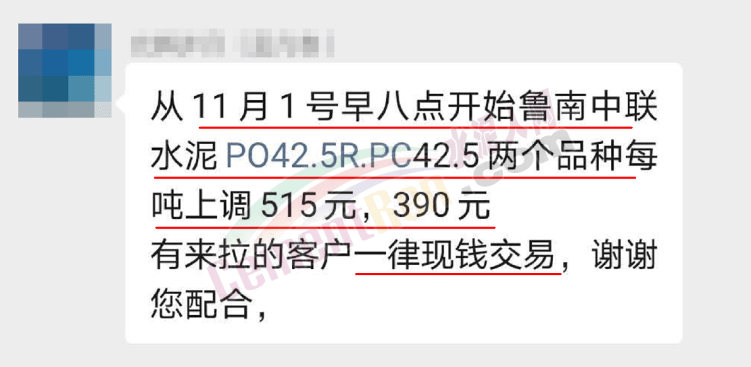 昨日,山東區(qū)域主導(dǎo)企業(yè)中聯(lián)水泥也發(fā)通知稱自11月1日起上調(diào)PO42.5R及PC42.5兩個(gè)品種水泥價(jià)格,上調(diào)后PO42.5R水泥執(zhí)行515元/噸,PC42.5水泥執(zhí)行390元/噸。