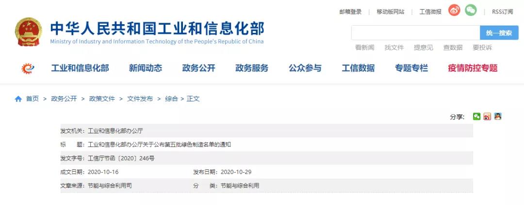 近日,工信部發布《關于公布第五批綠色制造名單的通知》(工信廳節函〔2020〕246號)稱,為貫徹落實相關文件,加快綠色制造體系建設,引領工業高質量發展,工信部組織開展了第五批綠色制造名單推薦工作。
