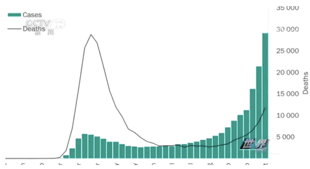 牛津大學醫(yī)學皇家教授約翰·貝爾表示,歐洲3月的“封城”措施有效遏制了病毒傳播,到6月歐洲各國每日新增病例大幅下降。但是經濟重啟讓歐洲放松了封鎖措施。到夏天,歐洲國家完全放松了隔離政策,人們認為病毒的威脅已經過去,很多人像之前一樣去旅游,這導致9月初歐洲開始了第二波疫情。