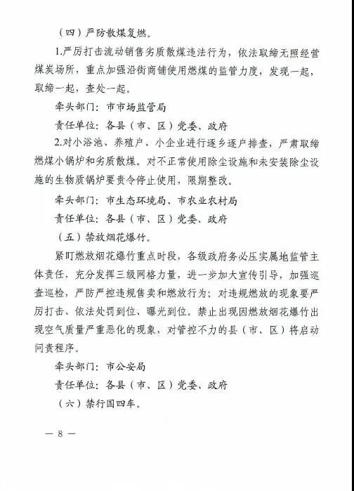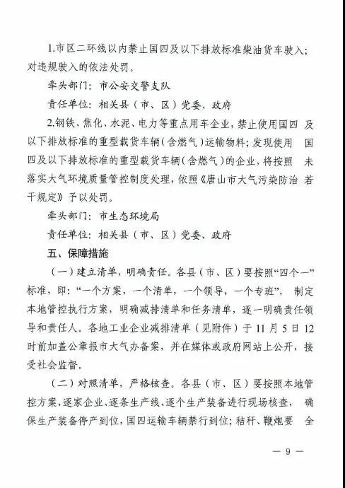(二)對照清單,嚴(yán)格核查。各縣(市、區(qū))要按照本地管控方案,逐家企業(yè)、逐條生產(chǎn)線、逐個(gè)生產(chǎn)裝備進(jìn)行現(xiàn)場核查,確保生產(chǎn)裝備停產(chǎn)到位,國四運(yùn)輸車輛禁行到位;秸稈、鞭炮要全面禁燒、禁燃到位;各項(xiàng)治理任務(wù)要全面摸底、倒排工期、按時(shí)完成。同時(shí),對鋼鐵企業(yè)秋冬季減排措施落實(shí)情況開展檢查,逐個(gè)核實(shí)高爐、燒結(jié)機(jī)、石灰窯、球團(tuán)停產(chǎn)狀況,必須按照減排清單落實(shí)到位,嚴(yán)禁打折扣、開口子。