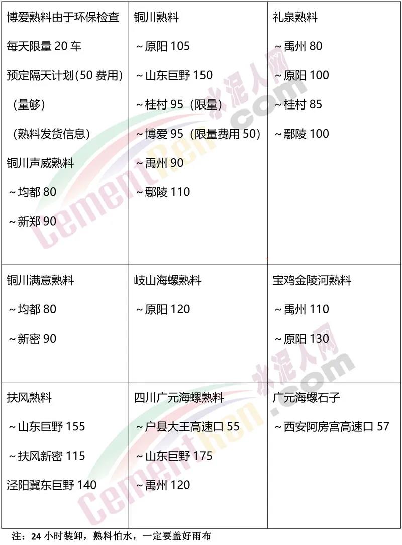 自去年四季度河南區(qū)域經(jīng)銷商將山西熟料“拉空”后,跨省到陜西采購以來,關(guān)中區(qū)域就一直有熟料供應(yīng)河南區(qū)域。而且不僅銅川聲威建材,海螺、冀東、堯柏以及四川廣元區(qū)域均有熟料和水泥經(jīng)由貿(mào)易商轉(zhuǎn)售到河南多區(qū)域。從貿(mào)易商近期發(fā)布相關(guān)信息可見,熟料從陜西區(qū)域運(yùn)至河南區(qū)域運(yùn)費(fèi)約在80~100元左右,到達(dá)山東荷澤區(qū)域運(yùn)費(fèi)在120~155元左右。且通知因環(huán)保管控每天限量20車,需提前以現(xiàn)金預(yù)定。