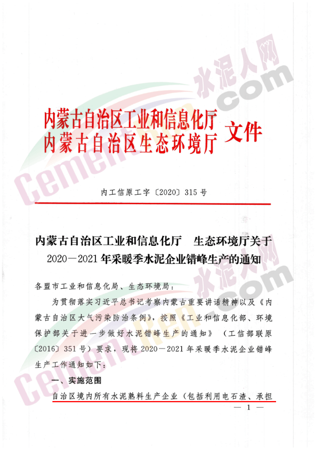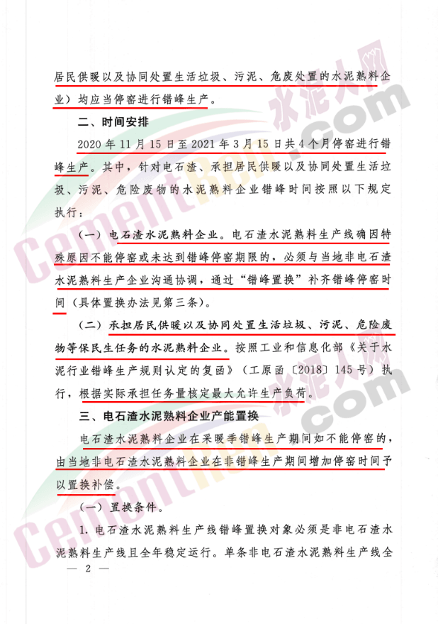 承擔居民供暖及協(xié)同處置生活垃圾、污泥、危險廢物等保民生任務的水泥熟料企業(yè),按照工業(yè)和信息化部《關于水泥行業(yè)錯峰生產(chǎn)規(guī)則認定的復函》(工原函[2018]145號)執(zhí)行,根據(jù)實際承擔任務量核定最大允許生產(chǎn)負荷。