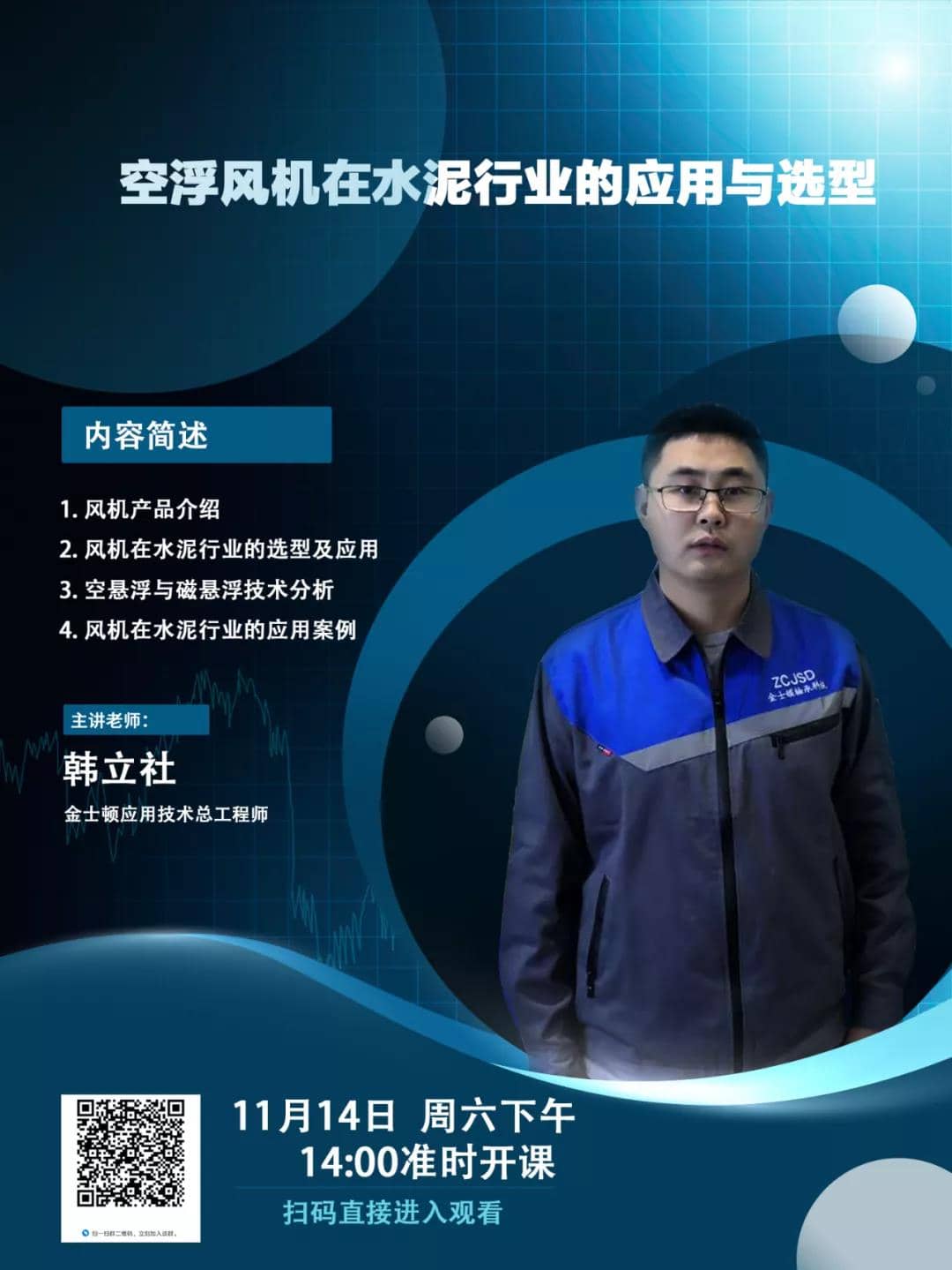 針對目前國內(nèi)鼓風(fēng)機行業(yè)的發(fā)展現(xiàn)狀,以及水泥企業(yè)在鼓風(fēng)機選擇方面遇到的種種問題,國內(nèi)首家空氣懸浮離心鼓風(fēng)機生產(chǎn)制造商--石家莊金士頓軸承科技有限公司(以下簡稱“金士頓”)技術(shù)應(yīng)用總工程師韓立社將通過線上直播的方式為大家一一解答。