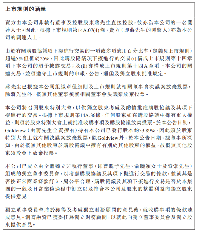 于完成后,目標公司將成為公司的一家全資附屬公司。目標公司持有蘇州恒康已發行股本的65%,蘇州恒康余下已發行股本的35%由Wu Jiong先生持有。蘇州恒康位于蘇州工業園區,主要從事用于癌癥及自身免疫疾病的創新藥物及治療技術的研發及商業化。