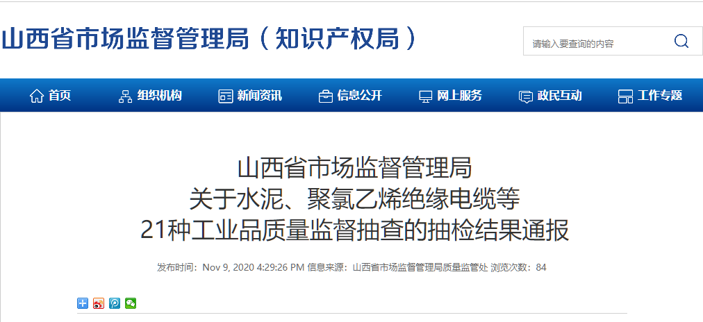 山西省市場監督管理局官網通報水泥、聚氯乙烯絕緣電纜等21種工業品抽檢結果。本次共抽查699家企業(其中:生產企業250家,經銷企業449 家)的874批次產品。其中,水泥產品共抽檢了62家生產企業的102批次產品。按標準規定檢驗了強度,氯離子,水溶性鉻(VI)、放射性4個項目。發現不合格產品2批次,不合格發現率為2%。不合格項目為水溶性鉻(Ⅵ)、氯離子含量。