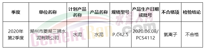 浙江抽查1家水泥企業1個批次水泥氯離子超標