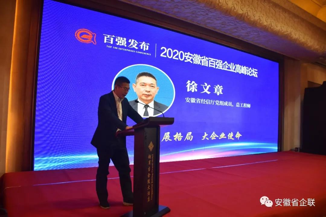 徐文章代表省經信廳向百強企業表示熱烈祝賀,向長期以來關心支持我省經濟發展和企業成長的社會各界人士表示衷心感謝。他指出百強企業是經濟增長的頂梁柱、高質量發展的排頭兵,希望各位企業家“不畏浮云遮望眼”,相信市場的力量、創新的力量、品牌的力量,圍繞國家戰略、產業短板、企業目標,聚焦突破“基礎”關、闖過“核心”卡、越過“高端”坎、拓寬“品質”路,做精主業、做強企業,堅定不移走品牌興企、創新強企的高質量發展之路,為建設“五大發展美好安徽”做出新的更大貢獻。徐文章表示,省經信廳將一如既往的在充分“給政策”、低調“搞服務”、大力“優環境”上下功夫,切實當好企業的“娘家人”“貼心人”,攜手打好產業基礎高級化、產業鏈現代化的攻堅戰。
