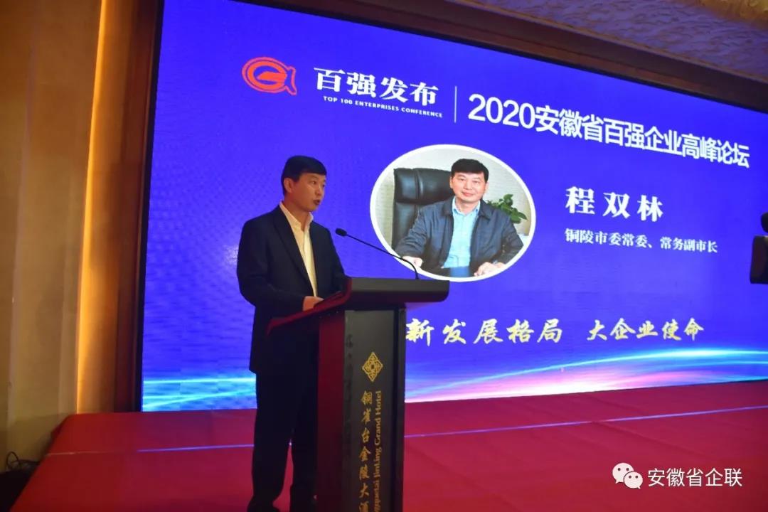 程雙林代表銅陵市委市政府對大會的召開表示熱烈祝賀,對各位領導嘉賓的到來表示誠摯歡迎。他說,企業是市場的主體,是推動經濟社會發展的重要力量,省企聯連續16年對百強企業做出排序,是促進我省企業做實做優、做大做強的重要舉措,激勵了廣大企業和企業家砥礪奮進、勇作先鋒,凝聚了全社會尊重企業、弘揚企業家精神、加快創新創業創造的強大力量,為推動我省高質量發展作出了重要貢獻。程雙林表示,銅陵產業基礎雄厚、發展平臺完善、交通條件優越、營商環境良好。希望廣大企業家能夠把握銅陵發展的重大機遇,選擇銅陵、投資銅陵、加碼銅陵,帶動更多企業來銅共謀發展,共創未來。我們將堅持“無事不擾、有求必應”,堅持客戶思維、用戶體驗,竭力提供最優服務、最強保障,全力為企業發展“保駕護航”。