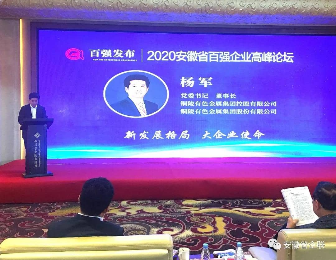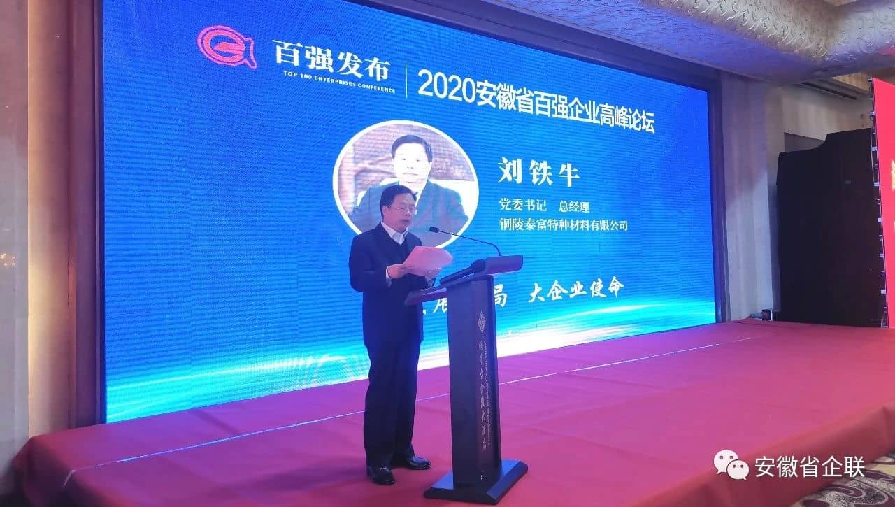 會議中,銅陵有色集團公司黨委書記、董事長楊軍,安徽海螺集團黨委書記、董事長高登榜,銅陵泰富特種材料有限公司黨委書記、總經理劉鐵牛作為百強企業代表先后作交流發言。