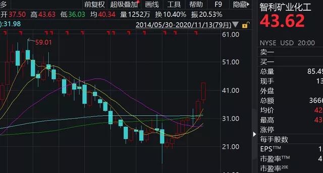 天眼查顯示,SQM是美股上市公司,主要開發(fā)的智利阿塔卡瑪鹽湖擁有世界上最大的鹵水儲量,是運營中最高品位的鹵水資源。股價歷史最高報59.01美元,天齊鋰業(yè)的收購價格較該股價有一定溢價。