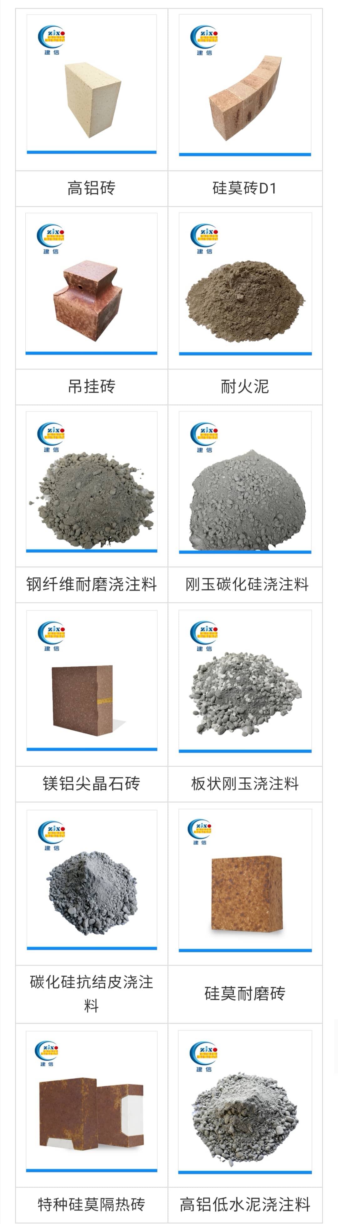 據鄭州建信相關負責人介紹,鄭州建信已經針對目前市面上一些耐火材料存在的缺點進行了升級研發等工序,可以滿足絕大多數市場的要求,具有常溫耐壓強度、熱震穩定性好、耐磨性強,導熱率高、材料致密等優點,可適用于水泥窯的不同部位。