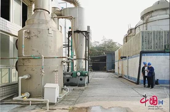 四川自貢市生態環境局執法人員檢查企業濕法除塵設備