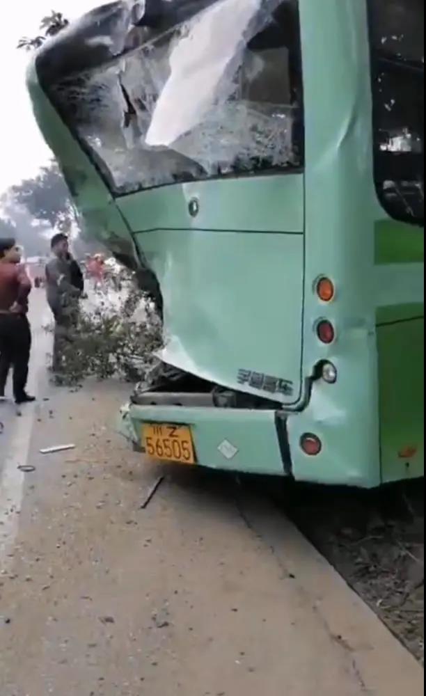 11月17日中午11時(shí)50分許,眉山市公交公司農(nóng)村客運(yùn)303路(車牌號(hào):川Z56505)從眉山發(fā)班駛往車輛廠,車輛在行駛至省道428線眉山市東坡區(qū)思蒙鎮(zhèn)鎮(zhèn)南村7組外路段正??窟呁\囅驴蜁r(shí),被川L90582號(hào)重型半掛牽引車牽引川LU305掛重型罐式半掛車(事發(fā)時(shí)該車裝載狀態(tài)為:空載)追尾,導(dǎo)致兩車相撞、車輛不同程度受損,客車內(nèi)13名乘客及2名駕乘人員不同程度受傷或感到身體不適。