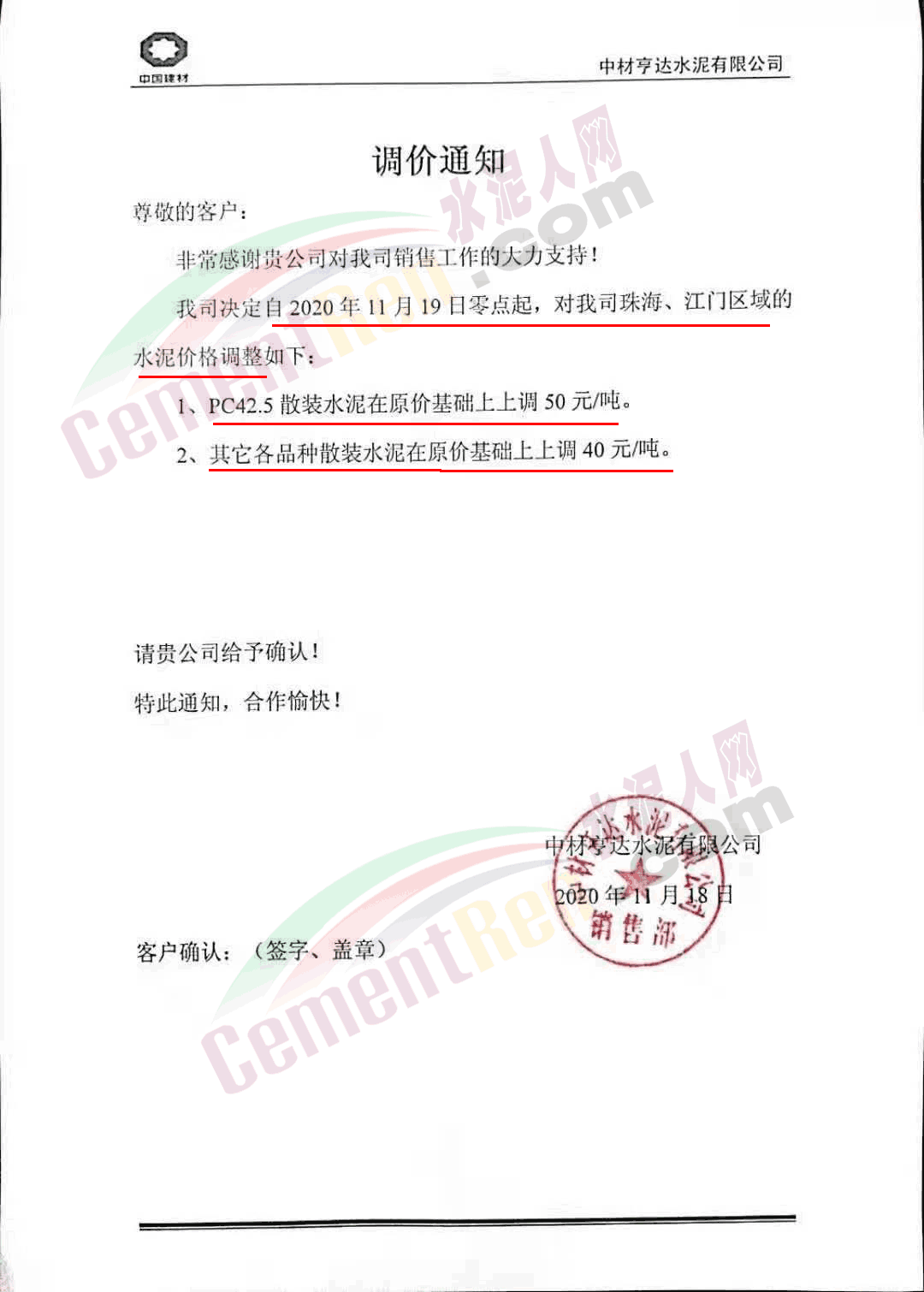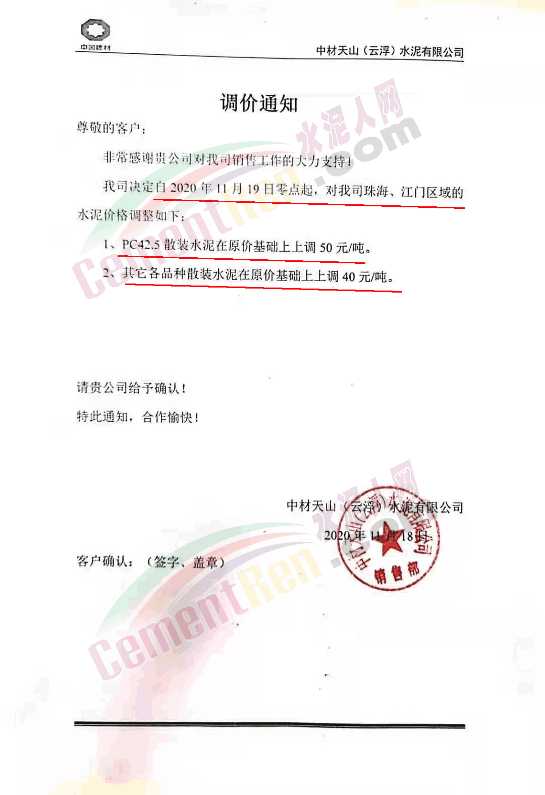 臺泥英德水泥有限公司通知,因庫存偏低,英德廠及貴港廠下珠三角的水泥散裝品種價格進行調整 。其中粵北及珠三角區域高標號散裝水泥上調30元/噸,PC42.5散裝水泥上調40元/噸。珠海/江門區域高標號散裝水泥上調40元/噸,PC42.5散裝水泥上調50元/噸。自今日(19日)0時起執行。調價含中轉庫交貨。